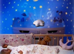Si vous désirez utiliser ce type de veilleuse, optez pour la veilleuse étoile de Pabobo. La projection de lumière est personnalisable avec des motifs de projection au choix. Elle possède aussi une option de diffusion automatique sur les murs ou le plafond.